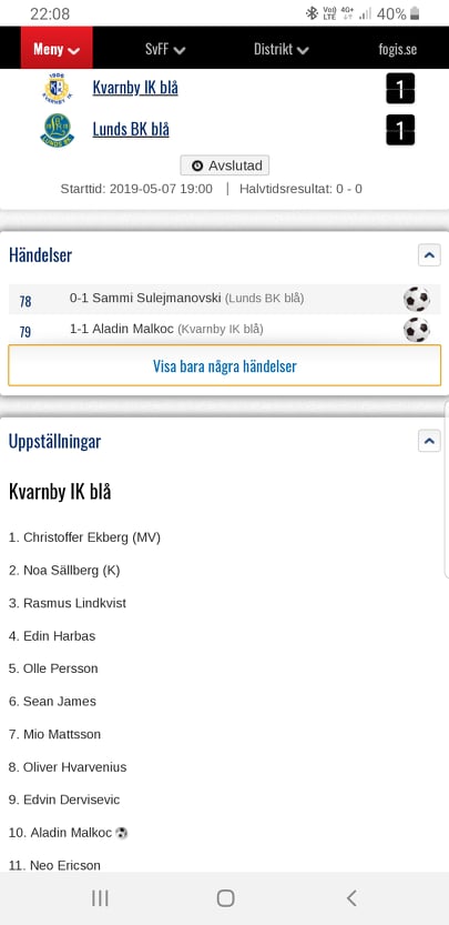 Vilken match detta blev. Mycket publik med två bra lag som verkligen vill spela fotboll. Kvarnby IK var det spelförande laget under stora delar av matchen. Lunds BK krigade verkligen emot framstormningen från den Blå Tsunamin och höll tätt efter ett intensivt och påhittigt anfallsspel.