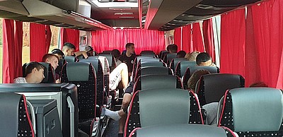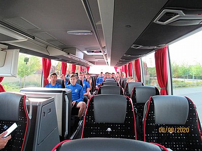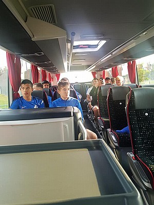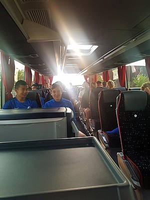 Stämningen i bussen var på topp och hemfärden bjöd på skönsång i den högre skolan.